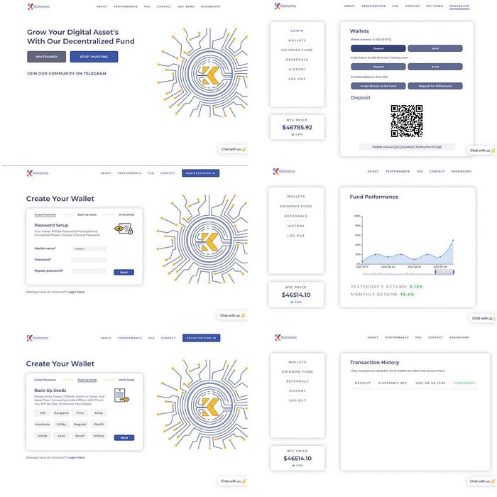 - Decentralized Bitcoin Wallet: To make a record with Koinomo, you simply need to make your own bitcoin wallet using a 12 key self-assertive seed key which interfaces your record to your PC and is supported by a 8–21 keys secret word.