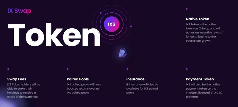 Native token: IXS Token is the native token on IX Swap and will act as an incentive reward for contributing to the ecosystem growth
